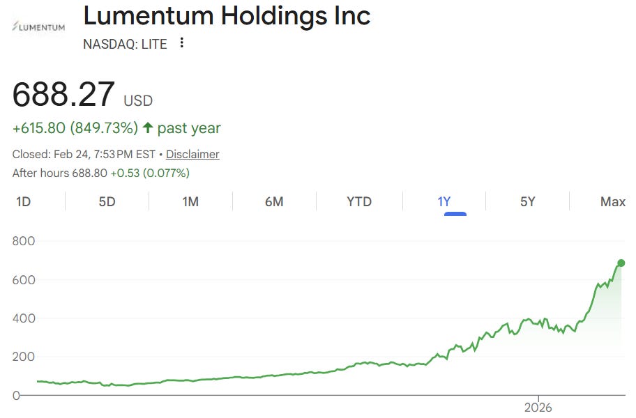 Curious what you think about Aixtron and LITE relative stock performance mirroring what happened with ASML and TSMC majorly underperforming rel to NVDA in 2023 (although TSMC did double in 2024 while NVDA ~3Xed). Seems like we're in a similar moment with optics as we were with GPUs in early 2023